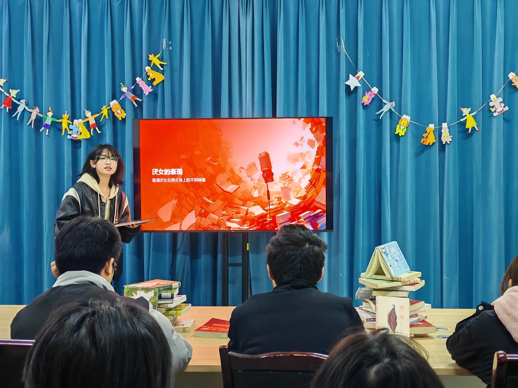 2022级日语1班廖梓妍同学以“看见那堵看不见的墙”为题,分享了上野千鹤子的著作《厌女》。她从“厌女”的定义与表现入手,剖析了这一现象在男女性别中的不同体现,并结合校园与社会现实,揭示了日常生活中隐形的性别规训与潜在影响。廖梓妍呼吁同学们保持对性别议题的觉察,打破偏见与刻板印象,在理解与对话中推动平等,活出更自由、更真实的人生。